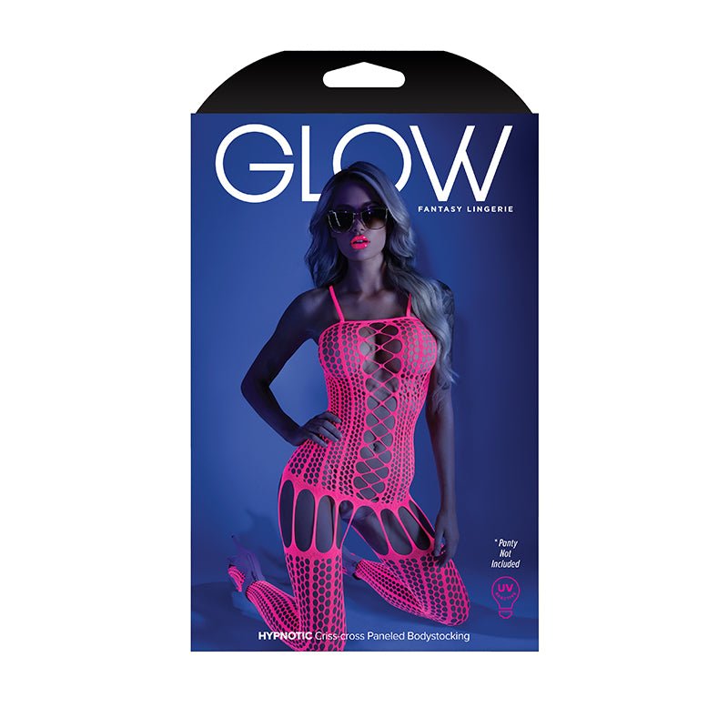 Fantasy Lingerie Glow Hypnotic Criss-Cross Paneled Bodystocking Neon Pink O/S