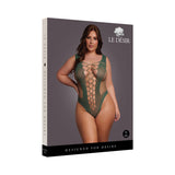 Le Desir V-Neck Teddy with Opaque Panels Midnight Green Queen Size