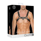 Ouch! Bonded Leather Chest Bulldog Harness Black S/M