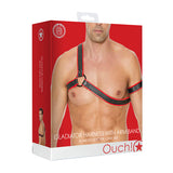 Ouch! Bonded Leather Gladiator Harness With Arm Band Red O/S