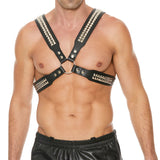 Shots Premium Leather Adjustable Pyramid Stud Body Harness Black