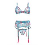 TURQUOISE SEAS FLORAL MESH BRALETTE, GARTER BELT & G-STRING 1X/2X TURQUOISE